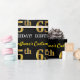 This wrapping paper design features a message like "CustomName’s 65th BIRTHDAY!", with the "65th" having a faux/imitation gold-like colour appearance. The name can be personalised, and the background is coloured black. It could perhaps be used when wrapping gifts being given for somebody’s sixty fifth birthday. [~Z0000177]