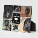 Pet pig memorial plaque printed with a photo collage of six photos featuring your beloved pet pig. Add their name too in a modern white script against a black background and beneath In loving memory and the white silhouette of a happy pig standing on all four hooves. Honour the pet pig you've lost with this pet pig photo collage plaque personalised with photos and your pet pig's name.