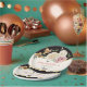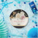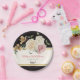 These chic and modern paper plates feature a colourful floral bouquet on the top on a black background. The bouquet has lovely roses in cream, ivory, and pink, with orange Peruvian lilies and green foliage. Under the bouquet is a an area of ivory colour for your custom text. There are two simulated gold strips that run the width of the plates. The words, "Melissa's Bridal Shower are printed in coral pink with the date of the event in sage green and the word, "Enjoy" in black below. Email niteowlstudio@gmail.com if you need any matching items or need help customising the wording.