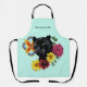 Black Jaguar Portrait Flowers Apron