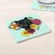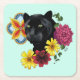 Black Jaguar Portrait Flowers Square Paper Coaster