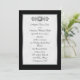 Formal invitation in black and pale grey, thin silver border with ornate vintage scroll and jewel accent.. Coordinating stationery available in store.