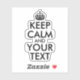 Create your own "Keep Calm and Your Text" design on custom cut vinyl stickers ... 3"x3" size.