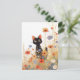 Black Kitten in Orange and Blue Wildflower Meadow Postcard