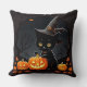Black Kitten in Witch Hat Amid Halloween Pumpkins Cushion