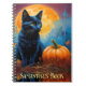 Black Kitten Pumpkin Full Moon Autumn Leaves Notebook