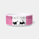 This is a heavy, durable bowl decorated with Tibbies of many colors, the perfect size for hungry/thirsty Tibs. The design is interesting and printing clear.