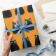 Cute cartoon style black cat. Custom black and orange gift wrapping paper rolls. Party decor idea.
