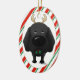 Humourous big nose Labrador Retriever Christmas ornament. Black Lab is in antlers and holding mistletoe in his mouth.