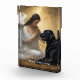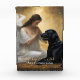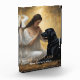 There is no love like the love of a dog. Although they live shorter lives than we do, the bond we have with them never dies and deserves a place in our homes as that love has in our hearts. A beautiful Angel embraces a Black Labrador Retriever in this gentle generative illustration. The loss of a dog is one of life's hardest passages. This lovely dog art keepsake is personalised with the dogs name and years of life along with his or her name.