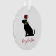 Black Lab Merry Christmas Santa Hat Holly Modern Ornament