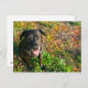 A panting black lab dog sits on the left side of a grassy area. The colours have been bumped up to give the grass shades of orange, green, yellow and make it a greaet area to put your own custom text or even photograph! Taken from the human eye view looking down on the dog, her pink tongue is hanging out and makes a nice contrast to the green grass. Great image for a custom dog design!