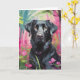 A striking modern art portrait of a black lab set against an abstract pink and green floral garden background. The dog’s dark silhouette contrasts beautifully with the vibrant, swirling colours of the garden, blending nature and animal in an expressive, contemporary style. The abstract brushstrokes create a sense of movement and energy, making this unique piece both playful and visually captivating.