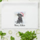 Black Lab Puppy wearing Santa Hat, Custom Text Tea Towel