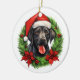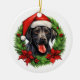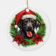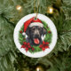 Celebrate the holiday season with our festive black labrador retriever Christmas wreath ornament. This charming ornament features a vibrant illustration of a green Christmas wreath, with the adorable face of a black lab wearing a cheerful red Santa hat at the centre. Perfect for dog lovers and holiday enthusiasts, this delightful decoration adds a touch of festive cheer to any Christmas tree. Made from high-quality materials, it ensures lasting beauty year after year. Hang it on your tree or gift it to friends and family for a heartwarming holiday surprise.