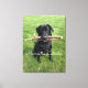 Black Lab with two sticks Dog Photo and Name Canvas Print