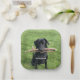 Black Lab with two sticks Dog Photo and Name Paper Plate