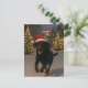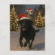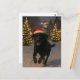 Humorous Christmas card featuring a Black Labrador and a Partridge in an apparent truce over the Christmas period! The Partridge is riding the Black Labrador in a snowy scene with Christmas trees twinkling in the background.