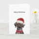 Christmas card from Black Labrador. Black Labrador wearing a bow tie, glass, and santa hat.