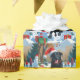 A heartwarming holiday illustration featuring a cheerful dog playing in the snow, wearing a Santa hat and surrounded by colourful gift boxes. In the background, children build a snowman beside a snow-covered Christmas tree, creating a joyful winter wonderland. Perfect for spreading holiday cheer and capturing the magic of Christmas.
