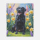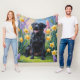 Black Labrador Dog Spring Flowers Painting Fleece Blanket