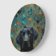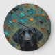 The striking black Labrador is beautifully rendered against a backdrop of rich, warm-toned fall leaves, creating a serene, nature-inspired scene. This wall clock is perfect for lovers of the breed.