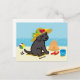 Black Labrador Puppy Straw Hat Cartoon Postcard. Cute Black Lab is having fun at the beach!! Whimsical and funny Labrador Retriever art created by Naomi Ochiai from Japan. Nice gift idea for dog people who love Labrador Retrievers.