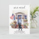 Announce your move to family and friends with our patriotic moving announcement featuring a beautiful watercolor painting of a Black Labrador dog, modern house with a blue door and the American flag proudly displayed on the front porch. This announcement is perfect for dog lovers and anyone looking to announce their new address. With its red, white, and blue colour scheme, this announcement is a great way to show your love for the USA while sharing your exciting news. Let everyone know that "We've moved!" and invite them to come visit and meet your best friend in your new home. COPYRIGHT © 2023 Judy Burrows, Black Dog Art - All Rights Reserved. Black Labrador Retriever Patriotic Dog Moving Announcement