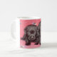 2 adorable black Labrador Retriever puppies in a holiday background on a mug.