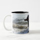 Black Labrador retriever running through surf, Two-Tone Coffee Mug