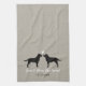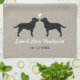 Black Labrador Retriever Silhouettes Facing Each Other with Heart and Custom Text. Personalize this custom design with names of the bride and groom, wedding date, or your best wishes for the happy couple. Makes a great gift for bridal showers, weddings and milestone anniversaries. A decorative kitchen towel for Lab lovers. Visit Jenn’s Doodle World for even more pet lover's designs and animal themed wedding favors and gifts.