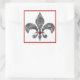 Square sticker with an image of a black lace fleur de lis on white adorned with a ruby heart. Red border. See matching custom-cut vinyl sticker, favour tag, label and wrapping paper. See the entire Cancan Sticker collection in the INVITES | Stickers & Labels section.