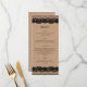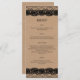 Beautifully illustrated black lace decorates this medium coloured, burlap menu. It is printed on a rack card as a an affordable option.
