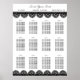 Let your wedding guests know where they are sitting with this seating chart poster. It features my black lace illustrations against a plain white background. The Headline "Find Your Seat" is at the top. Below that the names of the bride and groom, the wedding date and the city and state of the wedding are displayed. Then there's spots to customise each table arrangement for your guests.