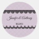 Black Lace on Soft Lavender Custom Wedding Classic Round Sticker