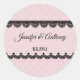 Black Lace on Soft Pink Custom Wedding Classic Round Sticker