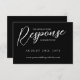 Elegant black reply online RSVP card in a black and white typography design with a laurel wreath monogram on the back and beautiful fonts. Black typography wedding RSVP online card with a greenery monogram and beautiful fonts. Elegant RSVP card personalised with your website so your guests can RSVP online. Black RSVP card for online response with elegant white fonts.