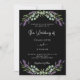 A black background decorated with lavender flowers and eucalyptus greenery. Personalise and your names and details.