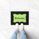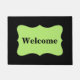 Welcome guests to your home with this custom monogrammed doormat. The door mat is black with a light green serpentine emblem to prove an area for you to personalise. The customisable word Welcome is the centre for a stylish and trendy doormat tand is easy to personalise with other words. Fully customisable.