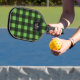 Black & Lime Green Buffalo Plaid Check Monogram Pickleball Paddle