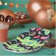 Entertain in style with these paper party plates personalised with your monogram, initials or name. The bold colours of this trendy paisley design pop on a black background with a lime green strip and emblem for personalisation. Bright, fresh, modern paisleys make a beautiful artistic design that includes inspirational words of Love, Hope, Faith, Inspire, Cherish, Be Happy, Dream, and Live in the background between the paisleys. This Mod Paisley collection, designed by Phyllis Dobbs, uses the colours of teal, turquoise, lime green, wine, yellow, fuchsia and orange to create a fun and whimsey take on the traditional and popular paisley motif. The paisley motif is both trendy and contemporary. Fully customisable for personalisation to add your own monogram or words.