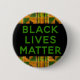 This pretty button pin features green text and an Ethnic Kente African print border stating "Black Lives Matter".