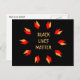 Easily personalise or remove the text on this postcard inspired by the tragic shootings of black young people by police. It features an abstract pattern of gold, red and black with the text: Black Lives Matter. Let's all peacefully work for justice in our communities.