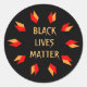 Easily personalise or remove the text on these stickers inspired by the tragic shootings of black young people by police. It features an abstract pattern of gold, red and black with the text: Black Lives Matter. Let's all peacefully work for justice in our communities.
