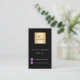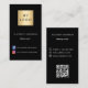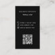 A classic black background. Personalise and add your business logo,name, title and contact information. Add your website url/link to the Qr code. With Facebook and Instagram icons. White text.