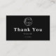 Custom black business thank you card featuring a bold modern design with your logo on the front and a clean "Thank You for your order" headline. The backside delivers your personal message, a discount code to drive repeat purchases, and your social media handles — all in a professional branded layout.