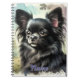 Black Long-Haired Chihuahua in Watercolor Notebook