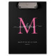 Black Magenta Pink Monogram Stylish Script Name Clipboard