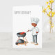 Cute birthday card with an illustration of a black man doing a barbecue while wearing a chef cook uniform. Illustrated and designed by Patricia Alvarez.
