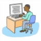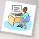 Sticker showing a black man working in an office at his computer.